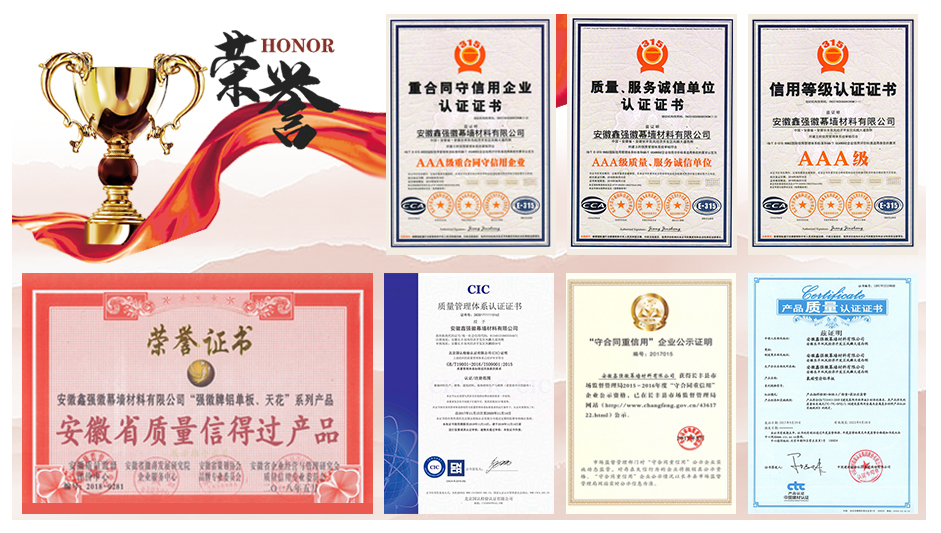 強徽深耕金屬裝飾材料二十載,是專注研發-設計于一體的智能化制造裝配式建筑一站服務生產廠家。強徽以推動中國城市可持續性發展為引領,以創新為驅動,不斷開發出品類豐富、性能優良的產品集群,現已涵蓋:。鋁單板系列:氟碳鋁單板、粉末鋁單板、烤瓷鋁單板、雙曲鋁單板、雕花、沖孔鋁單板、仿銅拉絲、拉網鋁單板、仿石材鋁單板、仿木紋鋁單板、水性多彩鋁單板;。金屬復合板系列:鋁蜂窩板、保溫一體板、三維復合板、A2防火板、瓦楞復合板;裝配式鋼質墻板系列:鋼質墻板、鋼質門;。內裝標準板系列:鋁方板、鋁方通、鋁圓通、條扣天花、V型天花。